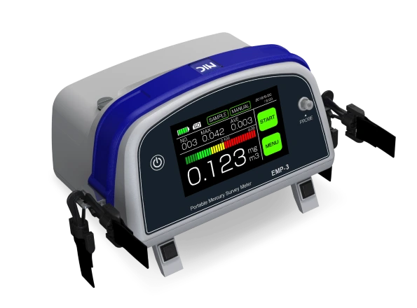 The gaseous mercury becomes an inhalation hazard and is especially critical for those that suffer chronic exposure. This is why it is important to have the ability to accurately identify & measure mercury in the workplace. The Model EMP-3 Mercury Monitor from Nippon Instruments Corporation (NIC) is a portable mercury monitor with many advanced capabilities, such as real-time measurement, interference-free design to reduce “false-positives”, and GPS-enable data logging. The EMP-3 is also easily portable with an included shoulder and waist harness (perfect for climbing ladders to maintain “3-point rule”), a full color touchscreen display, and wide measurement range. For more details, see our NIC EMP-3 page by clicking here.