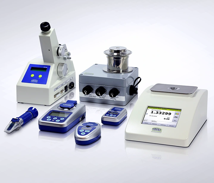 Refractive index is an important parameter used in determining the quality, quantity, purity or mixing ratio of a chemical substance. It is a common measurement used by a variety of industries – chemical, food & beverage, cosmetic, flavors and fragrances, pharmaceutical, metal working, petrochemical, education/research and environmental. Krüss manufactures a wide variety of Krüss refractometer models to suit your needs from digital to manual hand-held portable refractometers. Each group of chemical refractometer products are listed below. Click here to learn some refractometer cleaning tips.