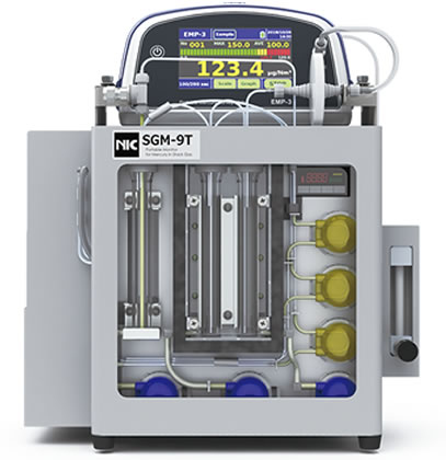 The NIC SGM-9 is a portable, high performance mercury analyzer for short-term monitoring of stack gases and includes speciation capabilities. Compared with the traditional continuous emission mercury monitors (CEMMs), the ultra-compact NIC SGM-9 provides simplified set-up and measurement in the field for Parametric Mercury Testing, Mercury Control Technology Evaluation, and Relative Accuracy Testing Audits (RATA). The compact size of the NIC SGM-9 makes it perfect to install and operate at elevated and space constrained locations near the stack sampling points. Multiple stack gas measurements are possible with one instrument. Real time measurements are achieved allowing for real time research, certification and optimization of combustion systems.